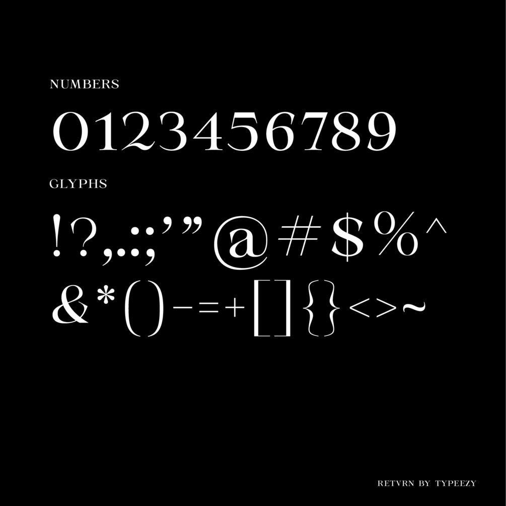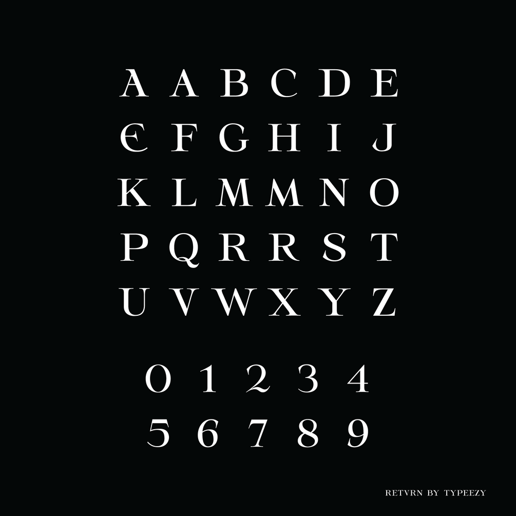 RETVRN is a serif style font that can be used for display, product design, and branding.